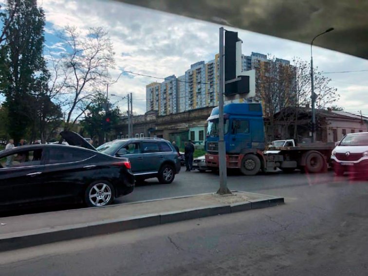 Три автомобиля — Kia Cerato, Mitsubishi Lancer и Volkswagen Touareg — столкнулись на пересечении улиц Балковской и Бабеля.