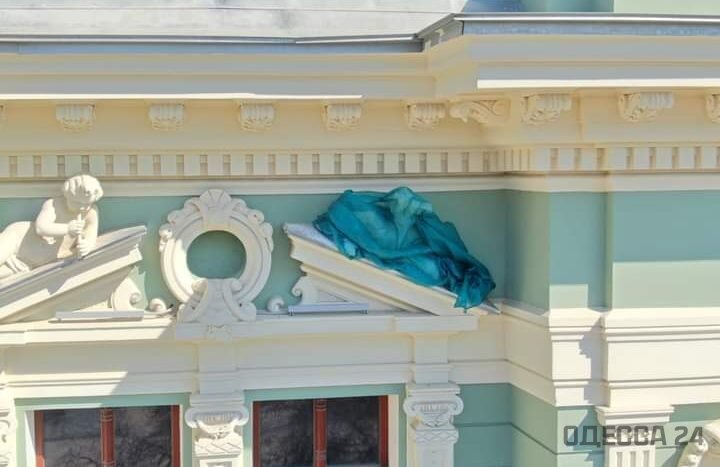Инцидент произошел в апреле этого года, в Одессе обвалилась одна из скульптур ангелов на фасаде недавно отреставрированного дома Руссова. Фигура потеряла часть головы, а вместо каркаса внутри оказалась пластиковая бутылка.