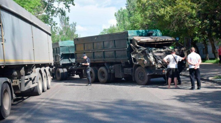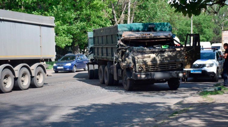 Днем 29 мая на улице Академика Заболотного, между Объездной дорогой и проспектом Добровольского, столкнулись грузовик КамАЗ и фура с прицепом.