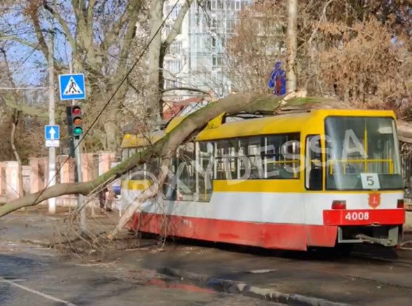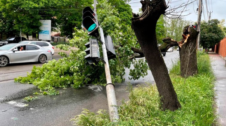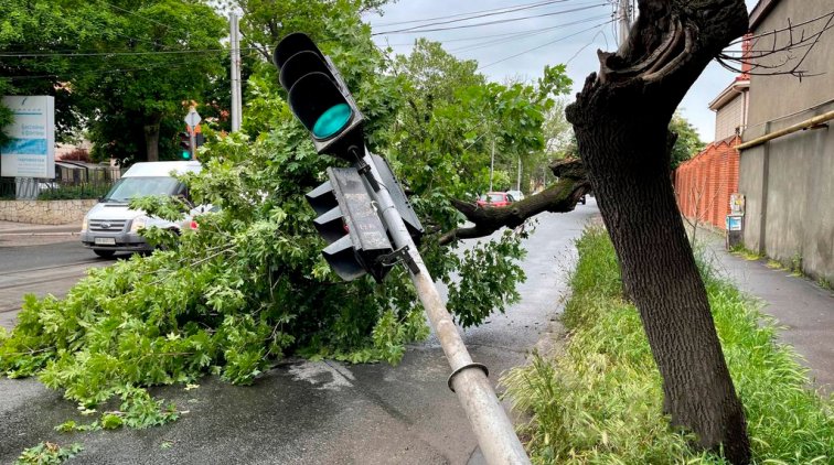 Дерево упало дорогу и серьезно повредило светофор. Затруднено движение на углу Фонтанской дороги и улицы Костанди.