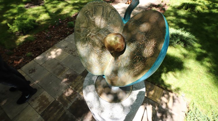 В Греческом парке Одессы прошло торжественное открытие трио скульптур «Эдем» одесского скульптора Михаила Ревы: «Рождение души», «Райская яблоня» и «Яблоко жизни».