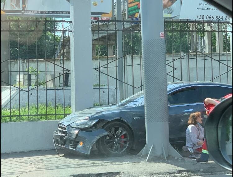 По словам очевидцев, столкнулись два автомобиля, от удара Tesla откинула на тротуар, по которому шла женщина.