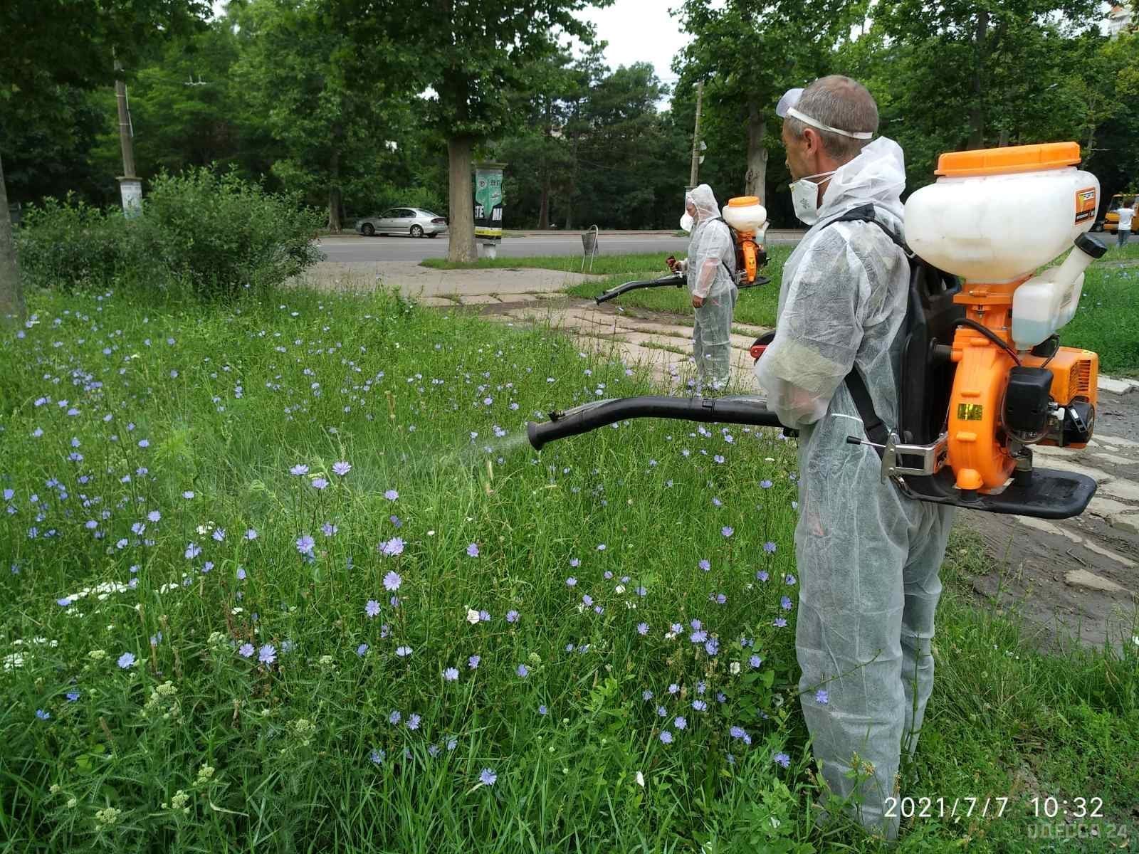 Сегодня коммунальщики проводили обработку амброзии на поле между Черемушками и аэропортом, в парке Энтузиастов, на Даче Ковалевского и прибрежной зоне в Киевском районе, на Куликовом поле и нескольких других локациях в Приморском районе.