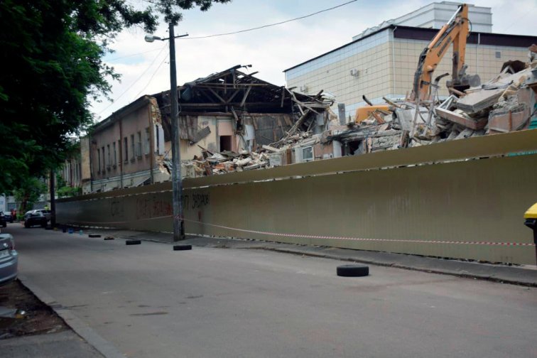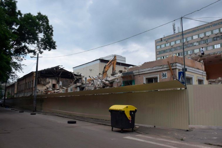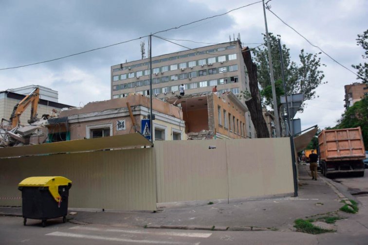 Старобазарный сквер в центре Одессы превратился в стройплощадку. Начался демонтаж двухэтажного дома 1841 года постройки на Базарной, 61, построенного по проекту архитектора Луиджи Камбиаджо для купеческого сына Степана Яхненко - на его месте возведут очередную жилую новостройку.