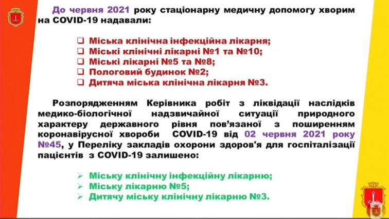 До июня в Одессе стационарную медицинскую ковидным больным оказывали в семи учреждениях: