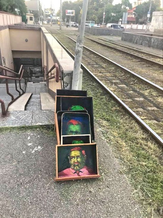 Тут же, на вернисаже были представлены портреты зеленых мужчин, помещенные я обычные ящики от стола. Многие узнали их. В общем понимание, эти люди совсем «не человеческий мусор», напротив, это – медийные личности, вершители судеб. Но в чью пользу вершат они миром и кем они на самом деле являются – этот вопрос риторический. Но художник дал на него свой ответ, который прекрасно прочитывается.