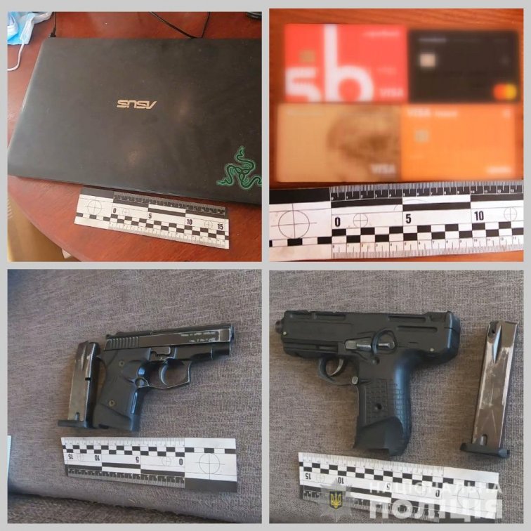 В ходе обысков силовики изъяли вещественные доказательства: банковские карты, мобильные телефоны, ноутбуки, квитанции, а также похожие на пистолеты предметы и патроны.