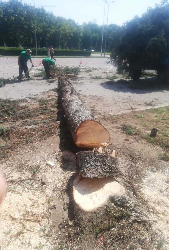 На проспекте Шевченко, 4 в Одессе сотрудниками «Горзелентреста» проводится спиливание голубых елей. Об этом пишет «Таймер».