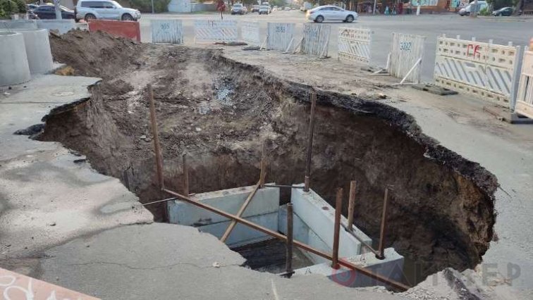 В настоящий момент в яме уже ведутся некие строительные работы: похоже, коммунальщики «Инфоксводоканала» постепенно продвигаются к тому, чтобы провал всё-таки закрыть.