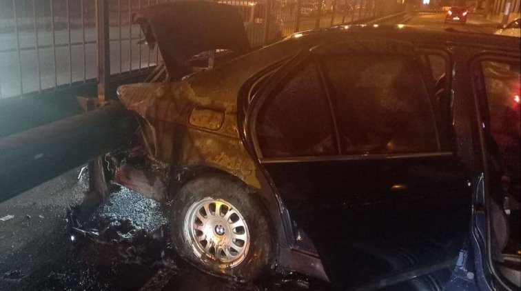 Автомобиль BMW загорелся в Одессе на улице Среднефонтанской после того, как 19-летний водитель не справился с управлением и врезался в отбойник. Авария произошла 25 августа в 22:30, - сообщили в патрульной полиции.