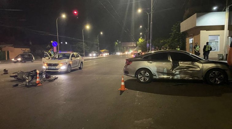 Вечером в среду, 25 августа, на пересечении Святослава Рихтера и Туристской столкнулись Honda Civic и мотоцикл.