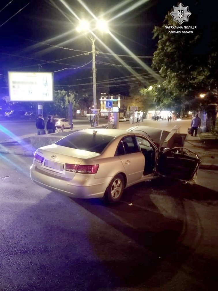 Сегодня ночью водитель «Хюндая», выезжая со Среднефонтанской, не выдержал безопасную скорость и машина врезалась в ограждение у подземного перехода на Привокзальной площади.