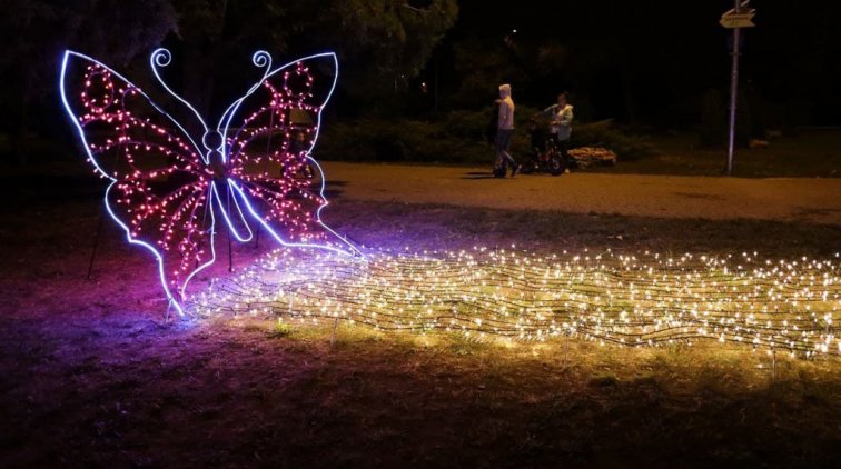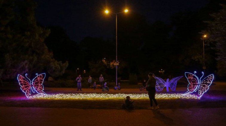 В Преображенском парке появилась новая светящаяся конструкция в виде двух светодиодных бабочек. Взрослые и дети уже с радостью делают фотографии на память.