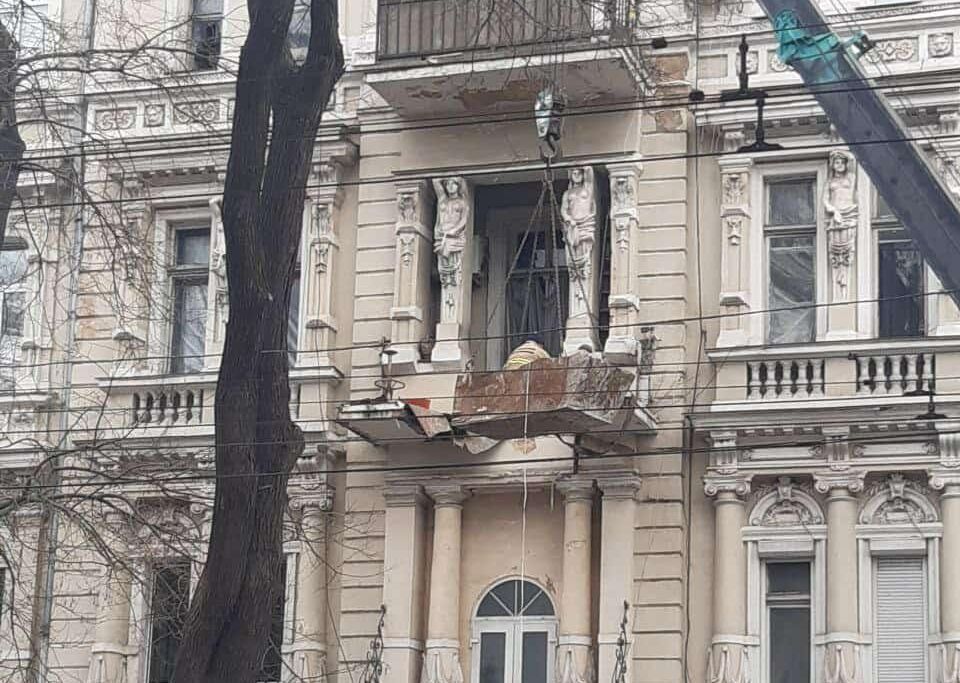 В Одессе демонтировали обрушившийся балкон дома-памятника на улице Новосельского