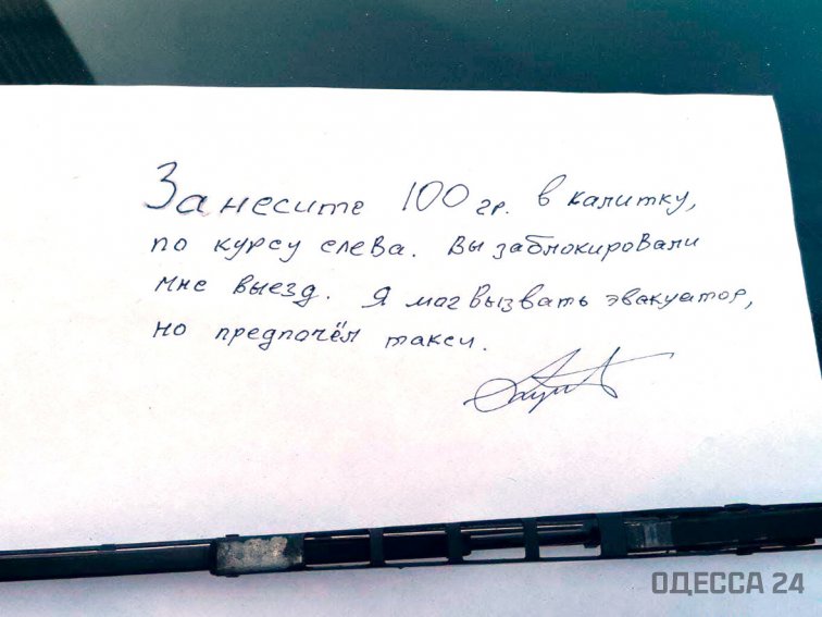 На автомобиле, который заблокировал движение другим, появилась записка следующего содержания.