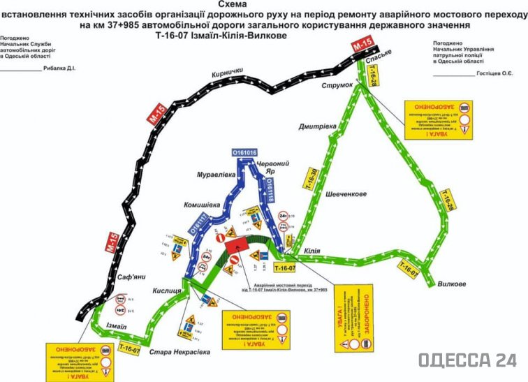 На данный период САД указала возможные пути объезда перекрытого участка. Маршрут Килия-Измаил возможен в объезд по хорошей дороге через Струмок по автодорогам Т-16-30 и М-15, а также по плохой дороге через села Червоный Яр, Камышовка и Муравлевка. Кроме того, неофициально существует проезд по дамбе вдоль Дуная.