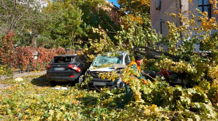 21 октября на Французском бульваре, 11б дерево рухнуло на пять автомобилей.