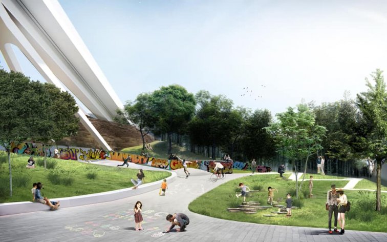 Здесь планируется обустроить три разных плато для разных типов досуга разных возрастов: Молодёжный сквер, Вишневый сад и Арт-стадион. Также будут учтены потребности людей с инвалидностью.