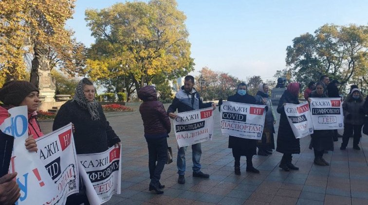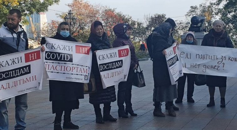 В Одессе перед началом сессии городского совета на Думскую площадь вышли противники вакцинации, карантина и COVID-сертификатов.