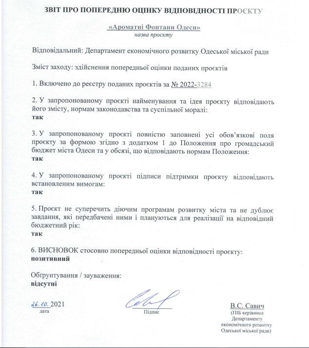 Департамент экономического развития Одессы предварительно положительно оценил данный проект.
