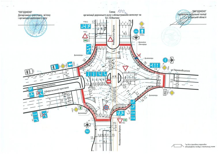 В ночь с 17 на 18 ноября на 5-ой станции Большого Фонтана коммунальщики нанесли дорожную разметку. Помимо разметки, должны поставить делиниаторы. А также оборудуют велодорожки и антипарковочные столбики. Схема движения по полосам поменяется.