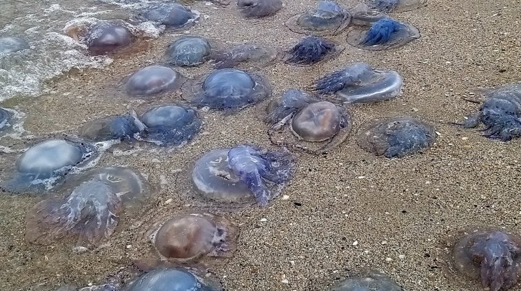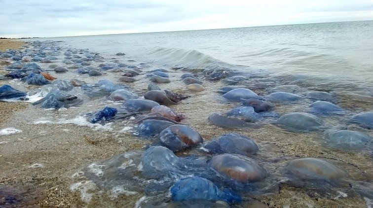 На побережье Черного моря в районе береговой зоны в Национальном природном парке “Тузловские лиманы” экологи зафиксировали массовый выброс медуз–корнеротов.