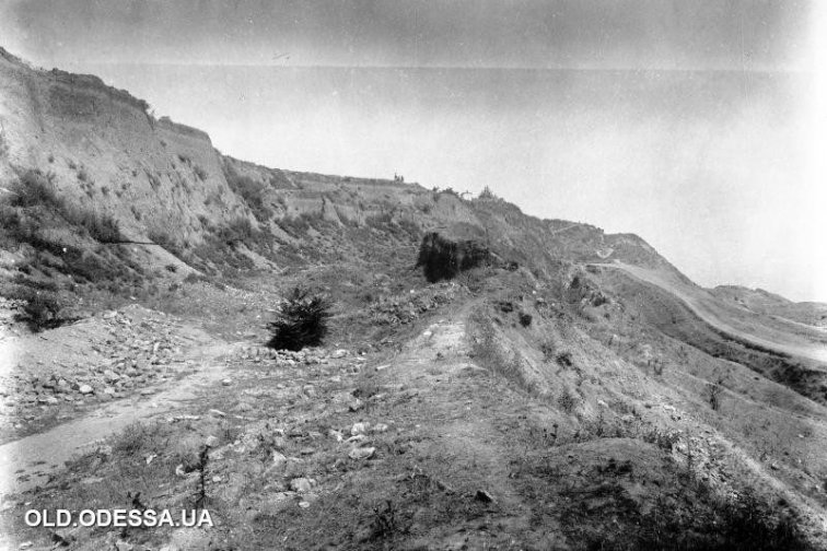 Вал выпирания в море, образовавшийся в результате оползня 14 августа 1936 года на 11-й ст. Б. Фонтана. Фото в "Генеральной схеме противооползневых мероприятий побережья гор. Одессы". 1940 г.