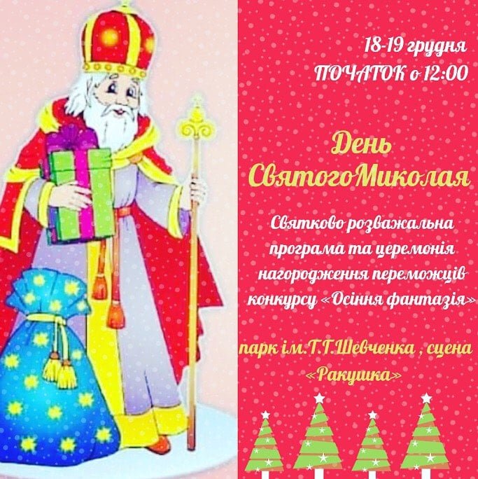 В парке Шевченко 18-19 декабря проведут "День Святого Николая". У сцены "Ракушка" его отпразднуют концертом и церемонией награждения.