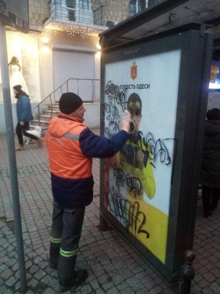 По информации предоставленной КП «Городские дороги», при мониторинге Приморского района, был зафиксирован очередной акт вандализма.