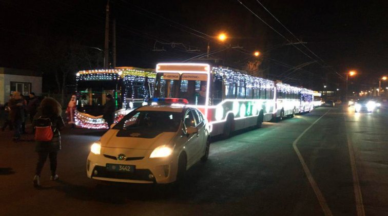 В день святого Николая, 19 декабря, когда официально начинаются новогодние торжества, в Одессе состоялся ставший уже традиционным парад троллейбусов.