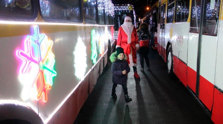 Вместо водителей в них были Деды Морозы, а кондукторов заменили Снегурочки.