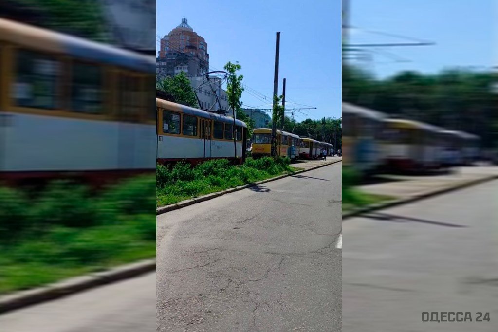 Временно приостановлено движение трамваев №17 и №18. На месте уже работают сотрудники КП «Одесгорэлектротранс».