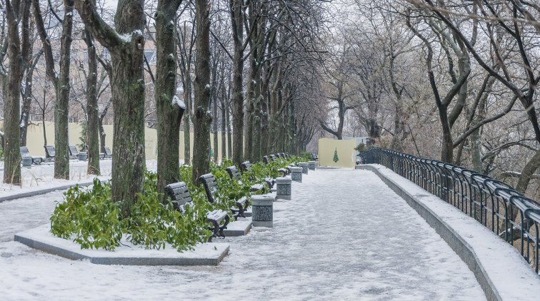 Первыми, кто снова вышел на открытый бульвар стали местные собачники и бегуны. Кстати, если будете инспектировать вновь открытый участок бульвара будьте осторожны, он полностью покрыт льдом, а съезд-пандус напоминает дорожку для бобслея.