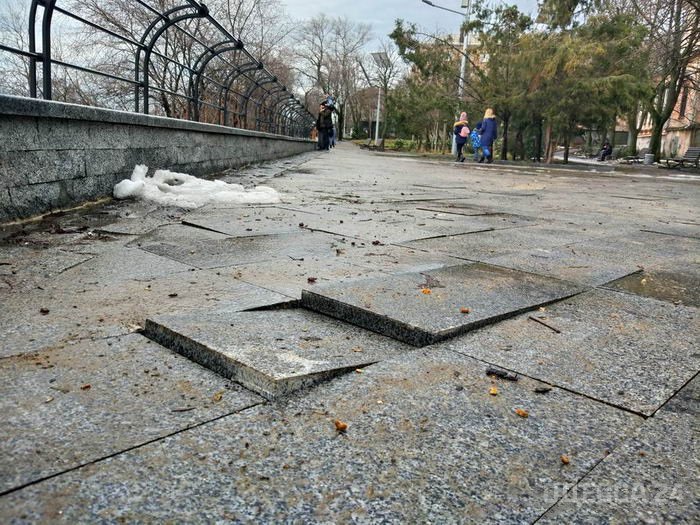 После завершения ремонтных работ на бульваре Жванецкого убрали еще одно ограждение у Шахского дворца. Теперь бульвар выглядит кардинально иначе – здесь установили длинный пандус для людей с инвалидностью, который оборудовали перилами.