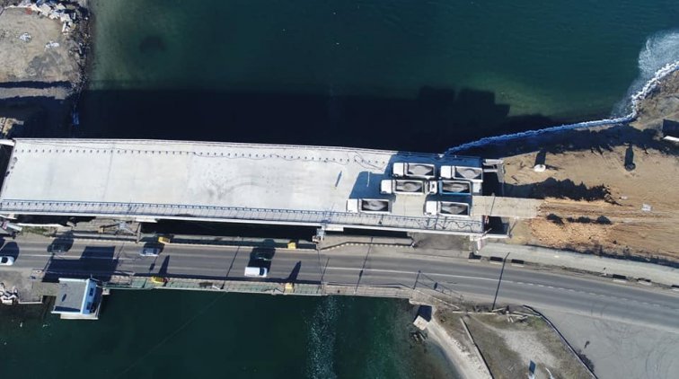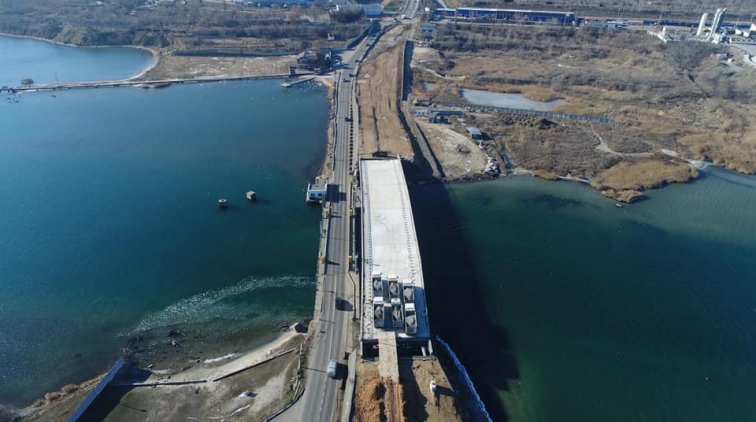 Возведение 100-метрового моста через Сухой лиман продолжается и недавно проведено испытание конструкции на прочность.