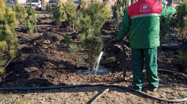Стартовала акция по высадке сосен на территориях образовательных учреждений Одессы.