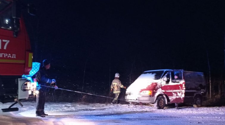 Спасатели помогли извлечь из кювета два легковых автомобиля Mitsubishi Carisma и Chevrolet Aveo, а также микроавтобус Ford Transit. Водители не смогли справиться с управлением из-за скользких дорог. Всего оказали помощь 7 лицам.
