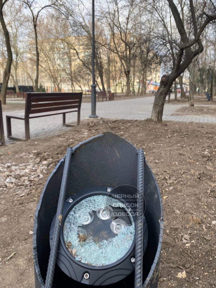 В конце 2021 года силами коммунального предприятия «Одесгорсвет» за бюджетные деньги было закуплено 66 светильников для подсветки деревьев на Крымском бульваре. Из казны было потрачено почти 1,5 млн грн. На днях неизвестные повредили 7 светильников — просто разбили лампы.