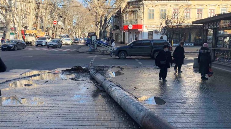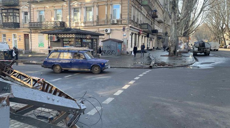 Специалисты КП «Одесгорсвет» выполнили демонтаж двух опор, поврежденных в результате дорожно-транспортного происшествия на ул. Ришельевской.