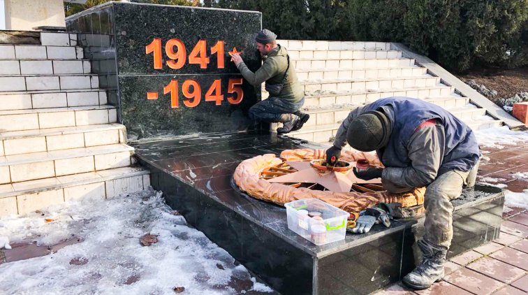 На главном памятнике Черноморска восстановили цифры начала и окончания войны, а также обновили окантовку Вечного огня.