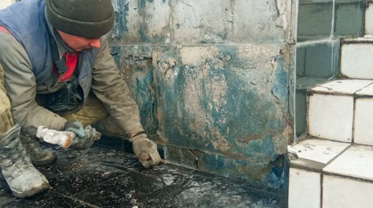 Рельеф новых цифр выполнен на лабрадоритовых монолитных плитах, которые закрепили на предварительно подготовленное основание.