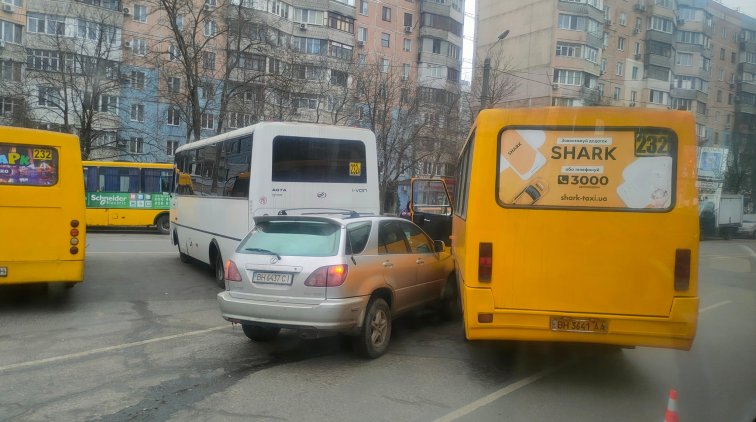 Маршрутка №232 и Lexus слегка притерлись. Машины не получили серьезных повреждений. В результате аварии никто не пострадал. На место для выяснения обстоятельств ДТП выезжала полиция.
