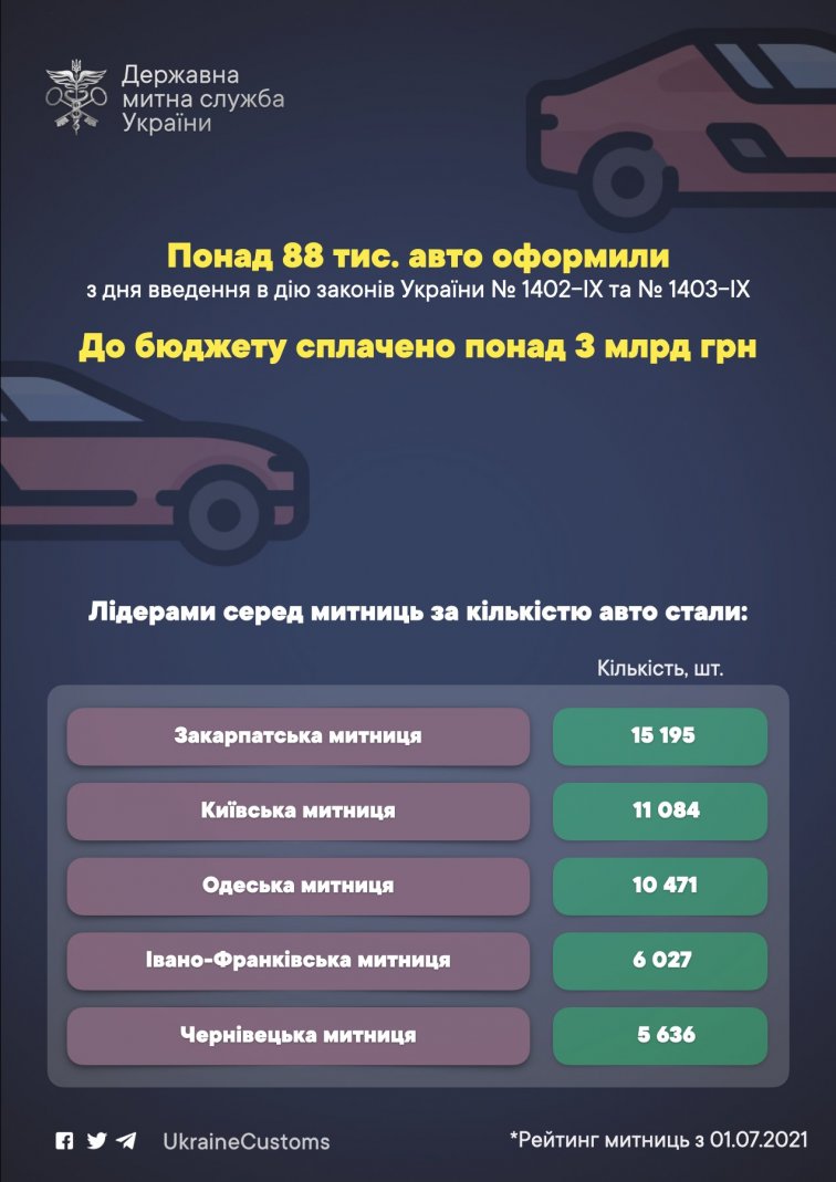 08 февраля завершился период действия упрощенного таможенного оформления и налогообложения подержанных автомобилей с иностранной регистрацией по законам Украины от 15.04.2021 №1402-IX и №1403-IX. В целом оформили более 88 тыс. таких транспортных средств, в Государственный бюджет Украины уплачено более 3 млрд. грн. Об этом сообщили в пресс-службе Одесской таможни.