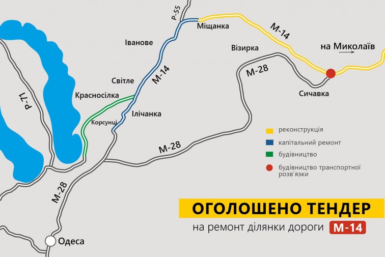 Служба автомобильных дорог в Одесской области объявила тендер на капитальный ремонт участка дороги М-14 от города Одессы до села Мещанка Лиманского района.