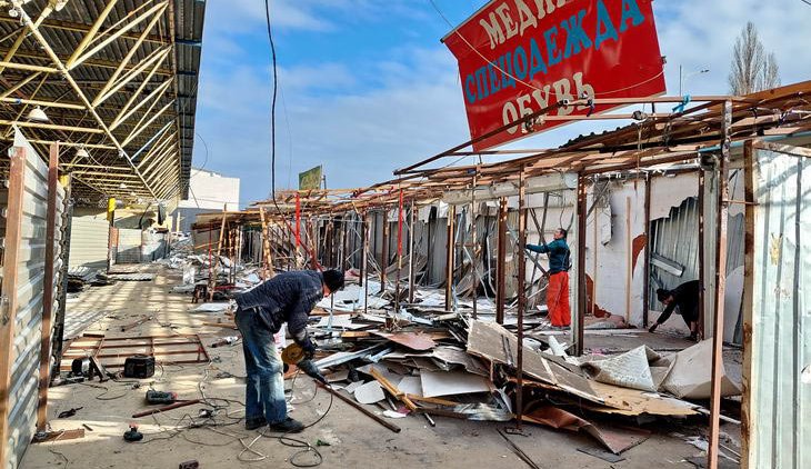 На Привозе продолжается реконструкция в рамках которой снесли торговые ряды с одеждой и обувью внутри рынка со стороны Новощепного ряда. Рабочие разбирают ларьки, которые стояли здесь около 20 лет. Территорию окружают забором, также подогнали тяжелую технику – экскаватор. Что будет на этом месте пока неизвестно.
