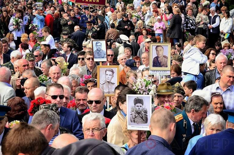 По традиции в это время к памятнику стекаются чиновники, депутаты Верховной Рады, городского и областного советов, представители общественных и ветеранских организаций. Впрочем, хватает и просто горожан, пришедших почтить память воинов-победителей и возложить цветы к памятнику Неизвестному матросу. Чиновников легко распознать по красным макам на одежде, а многие горожане принесли портреты своих родственников, участвовавших в Великой Отечественной войне.