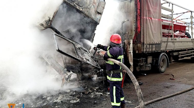 18 февраля в 13:39 в службу спасения поступила информация о том, что в селе Немировское на обочине дороги Балта – Кривое Озеро горит грузовой автомобиль.
