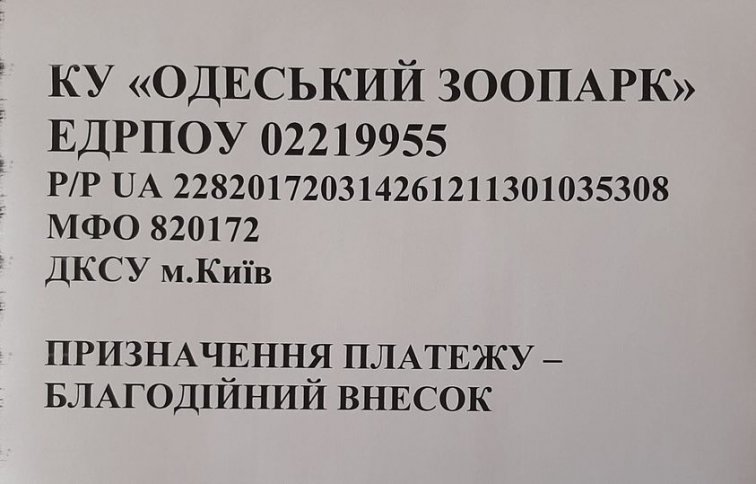Граждане массово помогают Одесскому зоопарку всем необходимым. Как сообщил директор зверинца Игорь Беляков, сейчас зоопарк открыл банковский счет для благотворительных взносов.