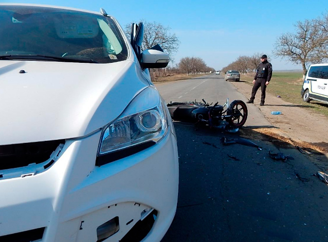 26 марта на дороге Беляевка – Маяки 30-летний одессит, который ехал на автомобиле Ford на рыбалку, выезжая со второстепенной дороги на главную не предоставил преимущество в движении мотоциклу, в результате чего произошло столкновение.
