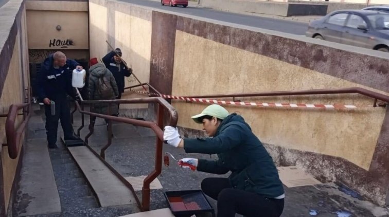 Коммунальщики провели покраску стен и перил в подземных переходах у железнодорожного вокзала, а также на Люстдорфской дороге (в районе Красного Креста).